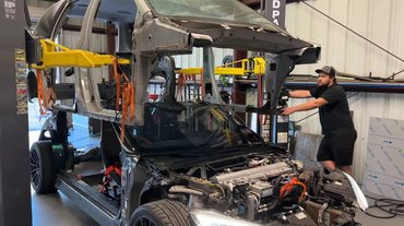 Az átépítéshez egy sérült Tesla alapjait használták, lényegében lecsupaszították padlólemezig, hogy csak egy nagyon erős gördeszka legyen akkumulátorral együtt. Erre kell ráemelni majd az Odyssey karosszériáját, amit első lépésben megszabadítottak az alsó részétől. Ezután elkezdték ráemelni a vázat a Tesla-gördeszkára és ahol elakadtak, ott mindig faragtak kicsit.