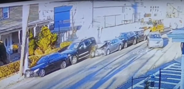 Nem mindennapi balesetet rögzített egy kaputelefon kamerája: egy iskolabusz összetolt több, az utcán parkoló autót. A főleg anyagi szempontból igen szerencsétlen eset Bostonban történt.