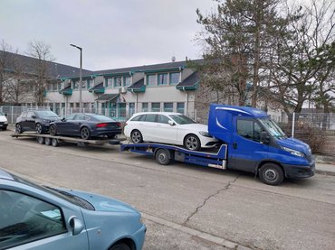 A leglátványosabbak azonban azok a szerelvények, ahol az Iveco Daily-k és Merci Sprinterek három autót vittek. Ráadásul utóbbiaknál is akadtak a platókon testesebb autók: az Audi A7-esek, A6-osok, az 5-ös BMW-k és a Renault Espace se épp pehelysúlyú.