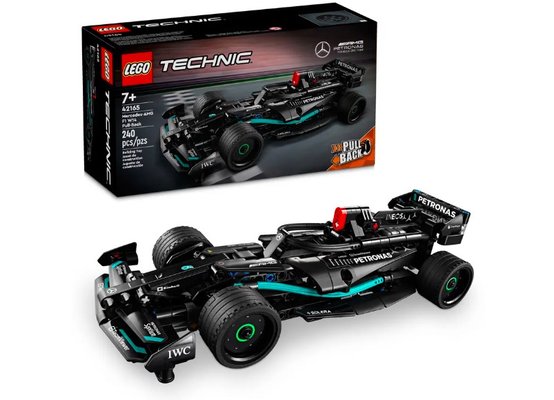 Aki kevesebbet költene, az megveheti a Mercedes-AMG W14 sokkal kisebb, de szintén Technic verzióját, ami a nagy szett töredébe kerül. A 9990 forintos készlet 240 darabból áll, a kerekei kicsit aránytalanul nagyok, viszont bónusz, hogy hátrahúzás után önerőből is tud haladni.