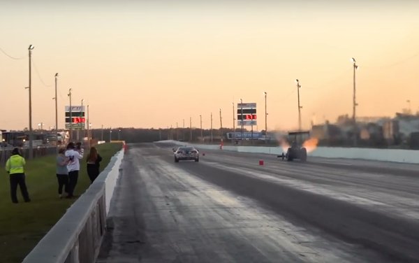 A top fuel 3,683 másodperces idejénél már csak a 330,23 mérföldes, azaz 531 km/h-s céltempója a kegyetlenebb. A különbség a két autó között ennek megfelelően igen látványos: a tizensokezer lóerős szörny úgy rombol el a Corvette mellett, mintha utóbbi csak kedélyesen andalogna.