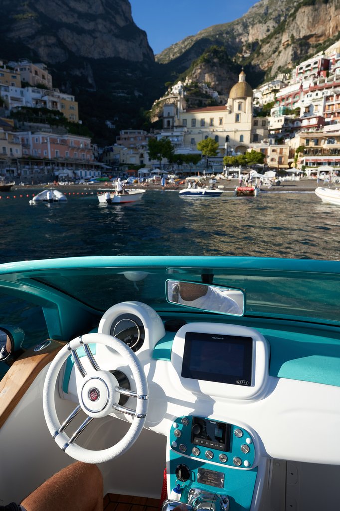 Külsőre tényleg egy Fiat 500 a vízen, ezt kár részletezni, ez a mentalitás azonban a fedélzeten is megtalálható: a kormány, a központi kijelző kerete és a műszeregység is a szárazföldi Fiat 500-asokéra hasonlít. Poén, hogy van benne/rajta visszapillantó tükör, és a fényszórói is működnek.