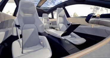 A belteret a visszafogott minimalizmus és a külsőhöz hasonlóan leginkább az íves formák jellemzik. A világos színekkel, a nagy, egybefüggő felületekkel az autó belseje olyan, mint egy modern nappali. Ez az elgondolás egyébként igen népszerű manapság az autóiparban: többek között például a BMW is ebbe az irányba halad.