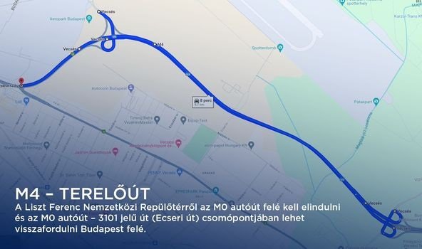 Most szombattól jövő keddig, azaz április 27-től április 30-ig a reptérről nem lehet közvetlenül Budapest irányába lehajtani. Helyette az M0-s - 3101-es út (Ecseri út) csomópontjában kell visszafordulni a főváros irányába - közölte az MKIF.