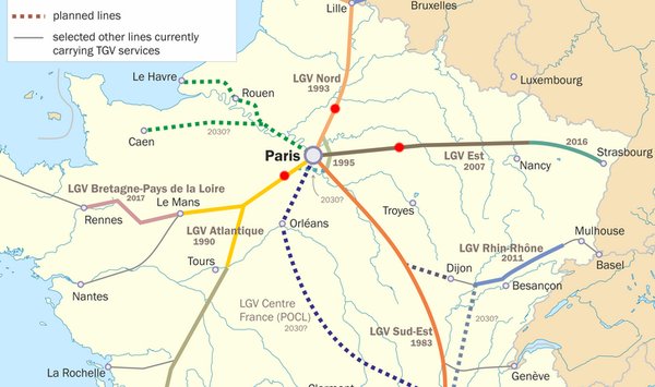 A megbénított TGV Atlantique, Nord és Est vonalakról fontos vágánykapcsolatok hiányoznak, amik lehetővé tehetnék a hatékony kerülőútvonalak használatát, így előfordulhat, hogy egy nagysebességű vonat akár többszáz kilométeren át is alacsony sebességű pályára kényszerül.