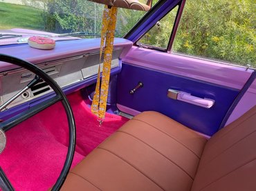 A belső is teljesen olyan, mint a rajzolt változaté: az üléseket barna bőrbe húzták, az ajtókárpitok kék színűek, az ajtóbehúzók és az ajtók ablak alatti részei pink színt kaptak. A felnikre fém dísztárcsákat tettek, a csomagtérajtóra felkerült a Junkerolla felirat és természetesen nem maradt ki a bal első sárvédő jellegzetes gyűrődése sem. A végső simítás az eredetire megszólalásig hasonlító, pink fényezés.