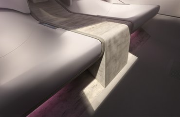 Belül a külsőhöz hasonlóan letisztult de szokatlan megoldásokat alkalmaztak. A belteret hosszában kettévágja egy 3,2 méter hosszú réz idom, amire az ülésekhez és az ajtókhoz hasonlóan finom gyapjú anyagot húztak. A luxusautóktól eltérően egyébként főleg textil huzatokat használnak bőr helyett, de van itt még sárgaréz, alabástrom és travertin kőzet is. A műszerfalat két hatalmas kijelző dominálja, amik gombnyomásra eltűnnek, ha nincs rájuk szükség. A középen átívelő idom miatt a Type 00 csak négyüléses, de a luxusautóknál ez egyébként sem szokatlan megoldás.