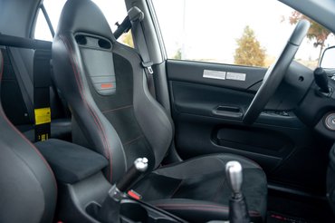 Az üléseket fekete bőrrel vonták be és opcionálisan akár négypontos biztonsági öveket is áthúzhatunk rajtuk. A súlycsökkentés érdekében szénszálas beltéri betéteket és kézifékkart szereltek be, illetve a váltógombot is alumíniumra cserélték. Az olyan kényelmi extrák maradtak, mint a klíma, az AM/FM CD-s rádió vagy a négy elektromos ablak.