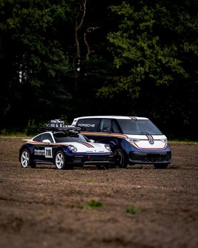 Most egy újabb hagyományt elevenítenek fel: a Porsche és az Audi rendszeresen használt Volkswagen kisteherautókat, amiket úgy matricáztak, hogy hasonlítsanak a versenyautókra. Most elkészítették a 911 Dakarhoz illő Volkwagen ID.Buzzt, és olyan csodálatos lett, hogy azonnal akarjuk.