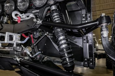 Az autó mind a négy sarkában független felfüggesztés van, amit külső tágulási tartályos King Shocks lengéscsillapítókkal támasztanak. A hatalmas gátlók rugóútja egyenként körülbelül 64-64 centi, így a Reboot Buggy terepen is stabil nagy sebességnél. Hogy még kevésbé fájjanak a felütések, a 18 colos off-road felniken 40 colos (101,6 cm) abroncsok feszülnek.