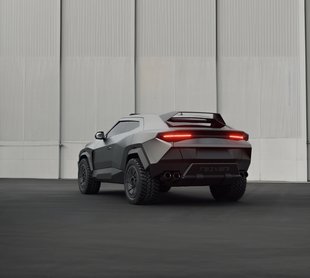 A Lambo SUV külsejét teljes egészében átszabták: markáns, élekkel határolt, kasznielemeket kapott, minden részletét csücskösebbre fazonírozták. A külső most már csak nyomokban emlékeztet egy Uruséra. Az egyedi, 22 colos felnikre húsos terepgumikat szereltek, így a menetkomfort erősen csorbulhatott az utcai gumis gyári autóéhoz képest. A szín természetesen matt szürke.