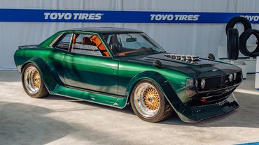 Elképesztő restomod építést hozott össze az Attacking The Clock (ATC) nevű tuningcég a 2025-ös SEMA kiállításra. Az alapot egy első generációs Toyota Celica (A20) adta, de nem sok maradt belőle. Az alap szerkezetet csővázzal és egyéb erősítésekkel merevítették a külső lemezeket pedig az utolsó darabig festett karbonra cserélték. Egyedi toldatokkal és idomokkal varázsolták még szexibbé, végül pedig az eredeti fényszórók és lámpák stílusát idéző, de azoknál sokkal modernebb LED-es egységeket szereltek előre és hátra egyaránt. A tükrök előre kerültek a motorháztető mellé, illetve elég látványos show-elem, hogy a motor hengersorai közül 12 gyönyörűen felpolírozott tüte ágaskodik karbon szívócsöveken.