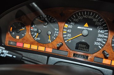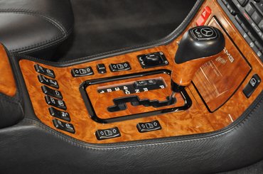 Az autó – ahogy egy korabeli luxusterméktől elvárható – minden kényelmi elektronikát megkapott, illetve a Mercedes kifejezetten finom anyagokat használt. A műszerfalon és a középkonzolon rengeteg a vastagon lakkozott faberakás, ezt csak a számtalan extra kisebb-nagyobb gombja töri meg. Az üléseken és az ajtókon kéttónusú bőr huzatot használtak, de nem kell komoly színátmenetekre gondolni: a szürke és a fekete váltakozik.