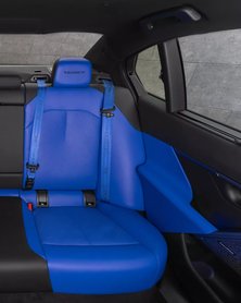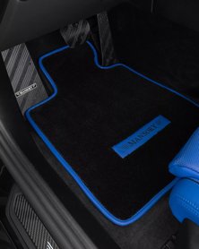 Ha már ilyen szinten hozzányúltak az autóhoz, akkor az utastér sem maradhatott érintetlenül. A fekete kárpitokat és műanyagokat sok helyen élénk kék betétekkel dobták fel, de pont csak annyira, hogy az már ízléstelen legyen. A hátsó ülések olyanok, mintha kiborult volna egy-egy vödör festék, míg elöl nem ilyen drámai a helyzet. Persze ide is jutott kék kárpit és betét bőven, illetve a szénszálas alkatrészek sem a szerénységet hirdetik, de a Mansory ugye nem is erről szól.