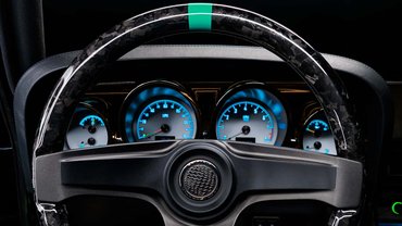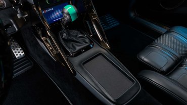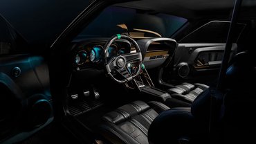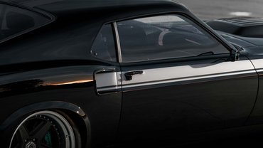 Nagyon finom érzékkel szabtak át néhány részletet az eredeti karosszérián, de a laikus valószínűleg nem mondja meg, hogy ez nem egy eredeti, 69-es Mach 1. Mondjuk tényleg ésszel alakítottak rajta: néhány ízléses szénszálas idomon túl nincsenek komoly változások. A belteret rendesen ugyanakkor határozottabban átalakították: belül jobban elszakadtak az eredeti formavilágtól, de sok a visszautalás és az ízléses részlet – nem beszélve a minőségi anyagokról. Talán a legfontosabb elem itt a masszív bukócső, amit ügyesen a kárpitok alatt rejtettek el. Vannak digitális műszerek, 3D nyomtatott alkatrészek és egy retró hatású légkondi is.