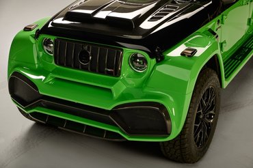 Nem ritka, hogy tuningcégek veszik elő a Jeep Wranglert, de olyan extrém átalakítást régen láttunk, mint amilyet az olasz Stradale Modena leművelt. Kicsit mintha keverték volna a Brabus és a Mansory túlzó stílusjegyeit és kaptak volna egy az eredetihez csak részleteiben hasonlító sport terepjárót. Óriási lökhárítókat, toldatokat, túlzó, groteszk szellőzőket és szúrófényeket kapott mindenhova.