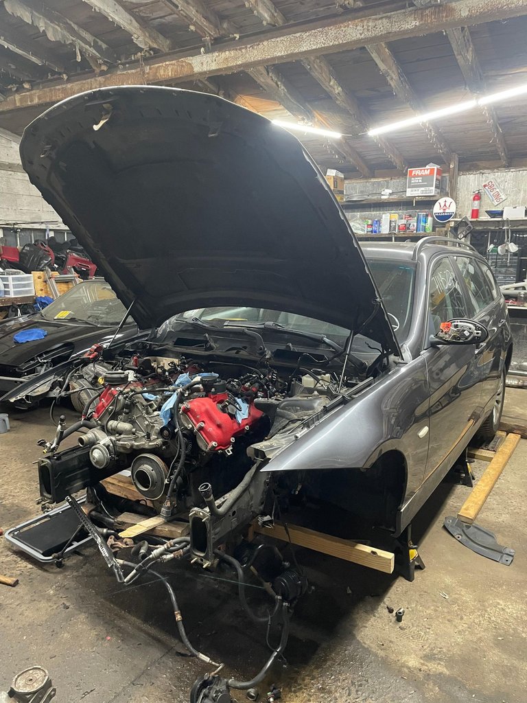 Felkerült egy érdekes autó a Cars&Bids oldalára, egy komolyan átépített BMW 328Xi. Egy nagymotoros, erős, összkerekes BMW, aminek pont a hajtásláncában alig maradt gyári alkatrész. Kiszórták ugyanis a nagy sorhatost és helyette egy Maserati-féle 4,7 literes, V8-as szívómotort építettek be. Ennek a kódja F136, amiből az F a Ferrarit jelenti, hiszen a két vállalat együtt fejlesztette ezt a motort. Ezen felbuzdulva az építő számos Ferrari emblémát helyezett el a motortérben és az autó külsején is.