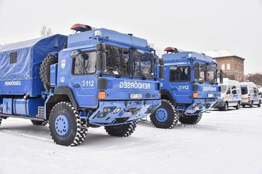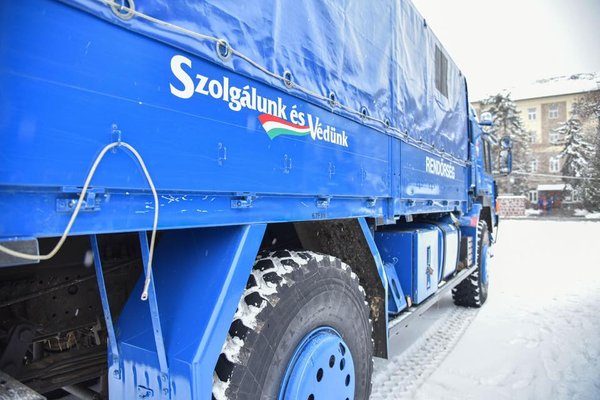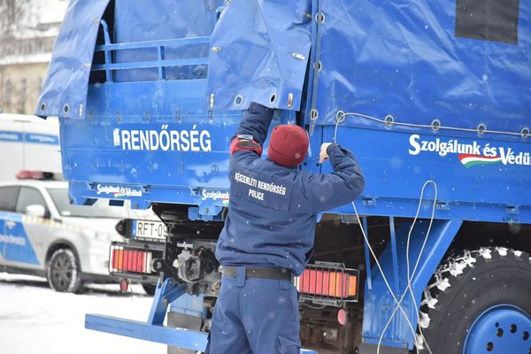 A rendőrök pokrócokat és hólapátokat is szállítanak a hatalmas teherautókkal, így segítve a többi rendőr, illetve a védekezésben segédkezők munkáját. Ezekkel a járművekkel kicsi az esély rá, hogy elakadjanak a hóban.
