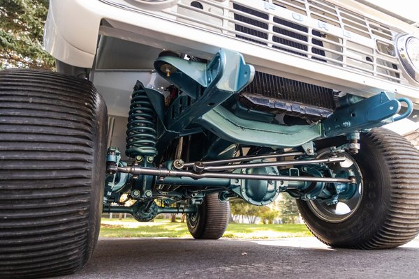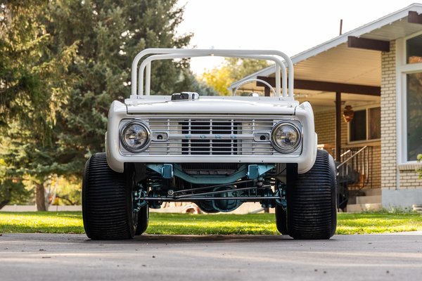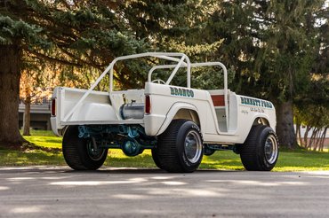 A váltó egy gyári, háromsebességes Ford darab, átalakítva, a differenciálművek elöl és hátul zárhatók, a lengéscsillapítók speciális Gabriel darabok. A 15 colos felnik egyedi gyártásúak, sőt, még a rájuk húzott Goodyear Blue Streak gumik se maradták átalakítás nélkül, a mintázatukat utólag készítették. Versenyautónál fontos a tömeg, ezért könnyítettek az alvázon, illetve leszerelték az első fékeket. A Bronco külsejéről is eltávolítottak amit tudtak, belül is csak egy filigrán versenyülés és egy Moon tank maradt.