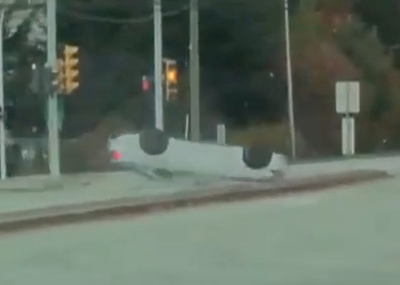 Ahogy a Mustang belerohant a szabálytalanul érkező Jeepbe, először megpattant rajta, mintha rámpa lenne, majd a tetején landolt. A Jeepnek nem lett baja, sőt, ránézésre a Ford se tört össze, az azonban biztos, hogy a tető nem köszönte meg, hogy rajta landolt az autó. Nem kizárt, hogy a Mustang nem javítható.