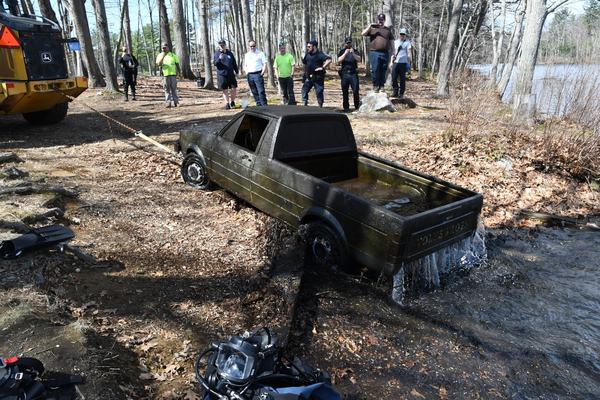 Mint később kiderült, a műszer nem tévedett: egy víz alá merült platós kisteherautó pihent az iszapban.
