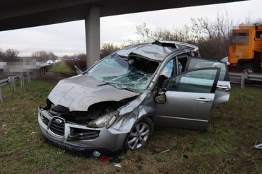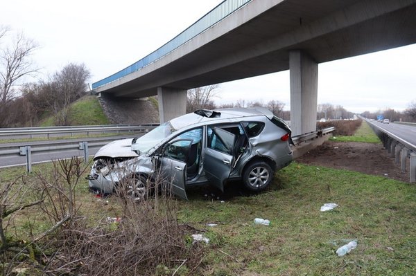 A rossz irányba haladó Audi kitérő manőverre kényszerítette egy szabályosan haladó Subaru sofőrjét, aki a manőver után elvesztette az uralmát az autója felett, és végül a szalagkorlátot átszakítva az autópálya melletti füves részen állt meg. A szerencsétlenül járt sofőr és három utasa megsérült, őket a mentők kórházba szállították.