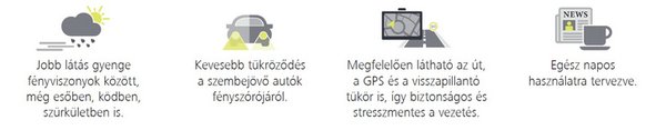 A DriveSafe a fenti problémák mindegyikére megoldást kínál, így használatával rossz időben, sötétben is élesen láthatunk, és megszabadulhatunk minden olyan stressztől, ami vezetés közben ezek miatt érhet minket: A DriveSafe lencse védi szemünket a fényvisszaverődésektől és a gyakori fókuszváltásokat is megkönnyíti.