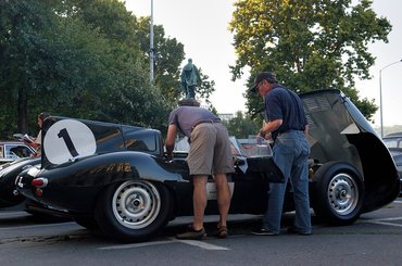 A GTO orrának vonalában pedig a világ legrémisztőbb versenyautója, egy méregzöld, sárga orrú Jaguar D-Type. Az autó, ami képről nem érthető meg. Hiszen miatányi, könnyeden hullámzó fémkapszula az egész. A sötétben közelről tűnik csak elő hatalmas cápauszonya, ami egyetlen cél érdekében épült, hogy megtartsa az autót a Mulsanne-egyenesben.