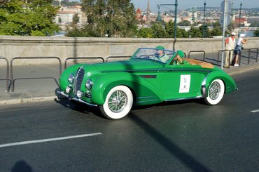 De a Duna felőli oldalon álló Alfa Romeo 8C 2300, a harmincas évek elejének egyik legjobb versenyautója is.