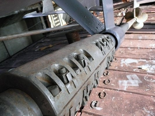 Közben az épített vaslépcsőn felmegyek a Sólyom III tatjára, a hátsó fedélzeten át eljutok a gépházhoz, ami a holland gyökereknek megfelelő "Machinekamer geen toegang_" táblát visel, odabent viszont minden maradt orosz. A gépterem egyszerűen lélegzetelállító. Aki szereti a Das Boot hangulatát, tudja, mire gondolok. Kevés a hely, de azért nem nyomasztóam szűkös, viszonylag kényelmesen elfér egy csomó műszer, kezelőszerv, és persze a két V12-es turbódízel. Hiába hajt szárnyashajót és várnánk nagy pörgést, már 1600-as fordulatszám körül leadja a csúcsteljesítményt, aminél nem sokkal kevesebbel utazik a Sólyom. A V12 turbódízel és az 1000 lóerő is stimmelne, szívesen rámondanám, vagy legalábbis városi legendaként terjeszteném, hogy ez a T72-es tank 62 liter hengerűrtartalmú motorja, ami valószínű, de egyértelmű bizonyíték nincs. Ezt hivatalosan Zvezda M401-nek hívják, a T72-es szakirodalma viszont emleget V-84-et, V-92-t, meg hasonlókat. De hát ugye miért is ne? Tárolóuszályunkat rögzítik a Colbert híd melletti rozsdás vízivilághoz, hihetetlen a híd közelről. Egy szép műtárgy. Mellette meg egyenesen hátborzongatók a toronydaruk, három ponton a betonívekhez rögzítve. Mennyiért is kapaszkodnék fel szélben?