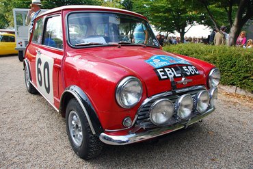 Másnap reggel, belépés után megint csak a Minikkel folytattuk, bizonyítva ezzel, hogy a Mini élt, él és élni fog. Ott ácsorgott a murván Paddy Hopkirk és Henry Liddon verseny-Mini Coopere, meg egy iszonyatosan durva kinézetű Clubman (a szögletes orrú, modernizált Mini) rendes, kardános összkerékhajtással. Reggeli kávénak is jó kezdés.