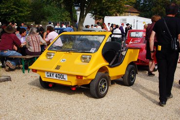 Naná, hogy volt Mini Moke terepjáró is, bár egy ekkora szabású rendezvényen, egy ennyire kerek évfordulóra valami mániákus igazán elkészíthette volna az eredeti, kétmotoros, 4x4-es Moke-nak legalább a replikáját. Na mindegy, jobb híján a bocifoltos, elöl kaparós is megtette.