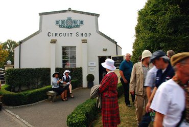 Tehát türelmesen csoszogtunk, mint Károly bácsi Frakk után, nem lehetett sietni. Átértünk, órák teltek el, fölöttünk dübörögtek az autó-dinoszauruszok. És mi volt rögtön jobbra az alagút szájától? Na mi? Hát a Goodwood Shop. Tibbyn azonnal úrrá lett a konzumidióta (holott ez valójában az én szerepem), üveges szemmel betódult az ajtón, s cserepes ajkát nyaldosva megjegyezte – most veszek egy pólót. Amiből végül pléhbögre lett, mert a goodwoodos póló baromi drága, de ezt én már nem értem meg. A butik túlsó fala ugyanis a pályával volt határos, és remegett az ősmotor-robajtól, még a szag is bejött. Otthagytam a gyengéknek kitalált lépes mézet, hadd rajzzanak rajta a férfiizgalmakra érzéketlen marketinggép-eledelek, kirohantam.