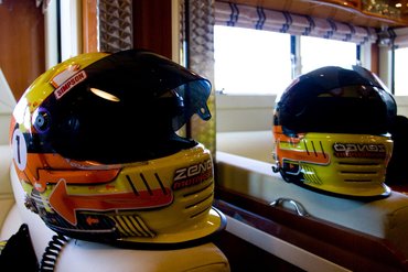 Norbi átöltözött tűzálló overallba, még gyorsan megmutatta a csinos, egyedi festésű sisakját, aztán beugrott a kocsijába. Nem a WTCC-s dízel versenyautóba, hanem a 300 lovas, benzines, turbómotoros kupás Leonba. Bár a dízel gyorsabb, én azért örültem, hogy ezzel fogunk körözni.