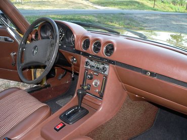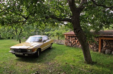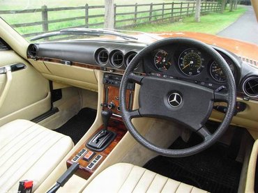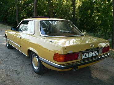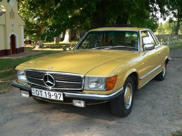 Ennyi a meghülyülésem története, és akkor ismerkedjünk meg dióhéjban magával a típussal is. A Mercedes-Benz R107 1971-ben debütált, és 1989-ig maradt a kínálatban. A modellcsaládba tartozó SL-eket hardtop és kabriolet kivitelben készítették, és különösen az USÁ-ban voltak keresettek, természetesen a 350-es és 450-es, V8-as benzinmotorral. Az SLC kupé (C107) az SL közeli rokona, lényegében annak közel negyven centivel megnyújtott változata. A hosszméret és a tengelytáv növelésére azért volt szükség, hogy az SL szigorúan kétszemélyes utasfülkéjéből négy személy kényelmes utazását lehetővé tevő, tágabb kabint készíthessenek. Az SL-ek és SLC-k lényegében a korabeli S-osztály (W116) stíluselemeit viselő karosszéria alatt nagyobb motorokkal megbolondított W114-esek voltak. Az SLC váltotta a kínálatban a 280/300 SC kupékat. A 2.8-as, soros, hathengeres benzinmotort 1974-ben vették fel a kínálatba, az első olajválság hatására. Az SLC-ket 1981-ben az 500 SEC kupék (W126) váltották, az SL-ek továbbra is gyártásban maradtak. Az SLC-ket úgy reklámozták, hogy egy sportkocsi dinamizmusával és egy limuzin által nyújtott kényelemben lehet utazni bennük, hosszú távon is. Tíz év alatt összesen 62 888 db SLC-t gyártottak és értékesítettek, a maguk idején ezek voltak a Mercedes-Benz legdrágább modelljei.