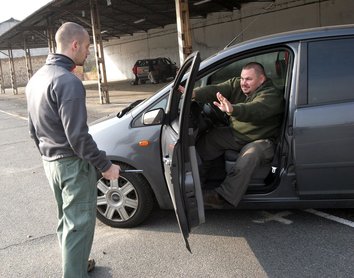 Az autós tréning résztvevőin látszik, hogy többségük nem ma kezdte a Krav-Magázást, ráadásul igen lelkesen csépelik egymást. Szerkesztőségi amazonunk, Angéla elsőrangú kiképzést kap. A személyi edzőjével először csak a betonon gyakorolnak, de fokról fokra közelebb kerülnek az autómhoz. Majd, amikor a tréning tematikájában „az autó, mint fegyver” témakörhöz érünk, az ajtókkal taszigálják egymást, a biztonsági övet rángatják, később egyik a másik fejét veri a műszerfalba, majd cserélnek. Mégiscsak kellett volna cascót kötni.
