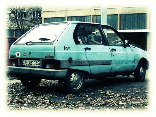 A kollégista aztán párizsi kollégistaként használta. Először lehúzta a jobb elejét (két gumicsík leesett), aztán parkolás közben a bal hátulját (másik két gumicsík). Hogy lazán kezelje a dolgot, és kicsit hippisre vegye a figurát, felragasztott egy Rolling Stones szájat a csomagtartóra – nna, így már jó, a vállalt szakadtság menő dolog, pláne ha a hangszóróból szól a Les Negresses Vertes. A trágyaszag, mondjuk, kicsit ciki volt, de tudta, hogy az autó valahonnan onnét érkezett Párizsba, ahol ő lakott, neki otthonos volt. Csak a szobatársai húzták el a szájukat, amikor beleültek. Hogy tudta így beszívni a belső tér a mező illatát?...