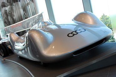 Elnézést, kicsit belemerültem a sporttörténelembe. Na, épp ezért jó az ingolstadti múzeum, mert mindenki megtalálja a magának való érdekességeket. Nekem a prototípusok és a versenygépek álltak a legközelebb a szívemhez, de vannak itt igazi masztodonok veteránbuziknak, motorkerékpárok tucatjai minden korszakból, restaurálatlan, rozsdás Horchok Amerikából, és még sorolhatnám. A fényképezőgépet szorgalmasan kattintgattam – a galériában olyan kincsek bújnak meg, mint a háború előtti Wanderer W25K, a szédületes luxusautó, vagy az Auto Union 1000 SP, a Wartburg-szagú miniatűr Thunderbird. Igazi gyöngyszemek – tudják Ingolstadtban, hogy a márkanév a múlttól csillog a legszebben.