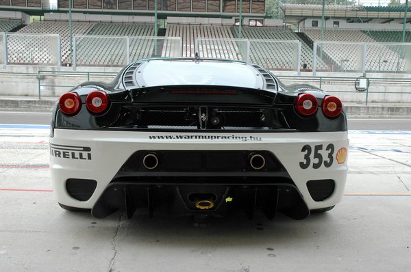 Később kérdezősködtem a szerelőktől is az F430 Challenge-ről – azt mondják, viszonylag egyszerűen állítható, szerelhető autó. Nagyrészt megegyezik a szériakocsival, csak a futómű, a difi, a kipufogórendszer és a versenyzés kellékei, a bukókeret, a tűzoltó készülék, a kagylóülések, a beépített pneumatikus emelő, a digitális információs kijelző és még néhány apróság különbözik. A motor teljesen gyári – plombálva érkezett Maranellóból, így nem lehet belepiszkálni –, ahogy a szekvenciális váltó is.