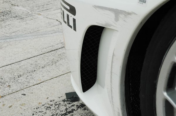 Ahogy jobban megnéztem az egyik F430-ast, feltűntek a használat nyomai. Amíg csak képeken láttam ilyen, sok tízmilliós versenygépet, valahogy fel sem merült, hogy ennyire hétköznapi tárgy benyomását keltheti élőben. Itt-ott lehúzva a festék, a bakelit hanglemez méretű első karbon féktárcsákon jól látszik az intenzív használat, és előfordulnak meglepően esetleges, vagy csupán egy Ferrarihoz képest túl egyszerűnek tűnő megoldások. Az utastérben például találok egy egyszerű lécdarabot, amelyet ragasztószalaggal és kábelkötegelőkkel rögzítettek a bukócsőre – nyilvánvalóan gyorsan improvizált megoldás kellett, és így maradt. A gyári alkatrészek közül az ablakmosótartály, pontosabban zacsi lepett meg a legjobban - majdnem olyan, mint a Zsigulié volt. Később, a szerkesztőségben mondta valaki, hogy ilyen van a háromkerekű Piaggio Ape 50-esben is, de a célnak itt is kiválóan megfelel.
