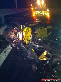 Eközben összeütközött egy Mercedessel, mellyel feltehetőleg a baleset előtt versenyzett. A karbonszálas utascella szinte érintetlen maradt, így lehetséges, hogy a 29 éves sofőr és a mellette ülő, 21 éves, litván nemzetiségű férfi is túlélték a balesetet, csakúgy, mint a Mercedes pilótája.