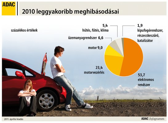 Ha a típusrangsort fenntartásokkal is kezeljük, a meghibásodások jellege mégis érdekes lehet: nem véletlenül átkozzák sokan az elektromosságot, a lerohadások mintegy feléért a villamos hálózat felelős, emellett szinte minden negyedik hibát az elektronikus motorvezérlés produkálja. A klasszikus, mechanikus problémák osztoznak a maradék negyeden, ezen belül maga a motor, illetve az üzemanyagrendszer szelete számottevő a hibatortában.