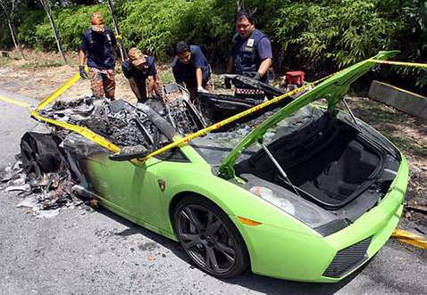 A maláj tűzoltóság teljes erőbedobással oltotta a tüzet, azonban a Gallardóból a kocsi orrán kívül nem sok maradt meg. „Épp egy emelkedőn tartottam felfelé, amikor láttam, hogy valami füst száll ki a motorból. Három éve vettem a kocsit, és kis híján szívrohamot kaptam, amikor láttam, hogy lángokban áll.” – mondta a tulajdonos. Szerinte egy, a benzintankból való üzemanyag szivárgás okozhatta a bő negyvenötmillió forintba kerülő autó vesztét, de az ügyet természetesen alaposabban kivizsgálják.