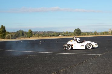 Aztán itt a villanyautó, a maga szürreális, zümmögő mivoltában (kell a masszív hűtés az akkumulátoroknak), végtelenbe nyúló nyomatékgörbéjével és megdöbbentő gyorsulásával. Természetesen ez is – mint az összes többi – egy fejlett központi vezérlőn és telemetriai rendszeren keresztül kommunikál bármelyik laptoppal, az egyes cellák feszültsége külön-külön mérhető, a hatótávval nem volt eddig gond, de erős fejlesztések várhatóak a felhasznált akkumulátorok terén.