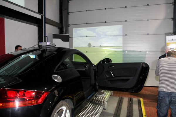 Valószínűleg ennek is köszönhette a TT, hogy nem álltak neki flexszel szétdarabolni, hanem olyan szimulátort építettek belőle, amely közúti járműként is működhet. Ehhez ma már minden adott, mivel az autó elektronikus rendszerei hálózatot alkotnak, amit kicsit becsapva megalkotható egy ilyen szimulátor. Igaz, nem kis munka, alaposan át kell alakítani az autó belső kommunikációs rendszerét. Úgynevezett virtuális érzékelők hitetik el az autó elektronikájával, hogy ő most megy, sebességet vált vagy épp fékez. Továbbá szükség van még pár szoftverre, melyek közül talán a legfontosabb a CarSim nevű csomag, amely a karosszéria, futómű, hajtáslánc viselkedését valós időben modellezi. Sőt, még az egészről egy animációt is készít.