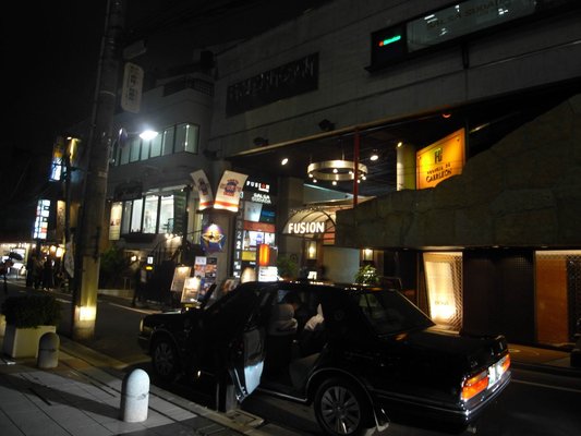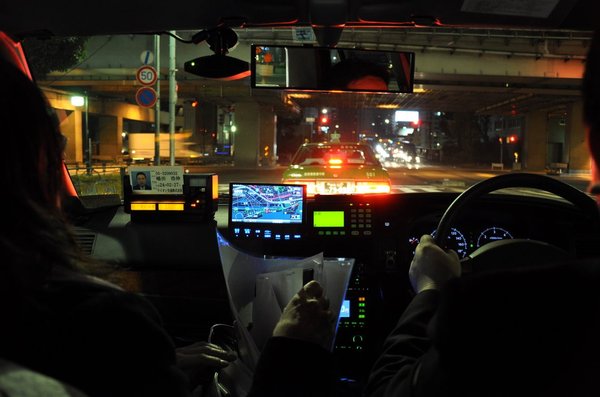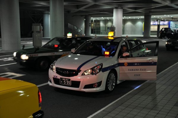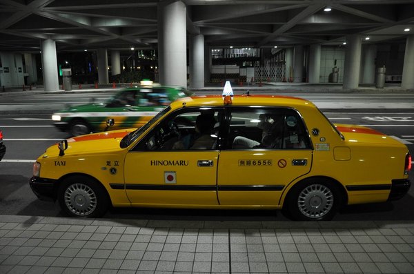 A japán taxi igazi célgép. Hasonlóan elavult, kipróbált, egyszerű szerkezetű, bevált jószág, mint a londoni Austin FX4, vagy a new yorki Checker Marathon volt. A japáni nem annyira régi, ezek a kocsik nem az ötvenes-hatvanas, hanem a hetvenes évek közepében hordják a gyökerüket. Bár hébe-hóba látni egy-egy Priust (borzasztó elegánsak taxijelzővel, feketében), a szalonnál a droszton pedig az egyik kocsi egy Subaru Legacy kombi volt, azért minimális csúsztatással igaz, hogy Tokióban Nissan Cedric-ek és Toyota Crownok a taxik.