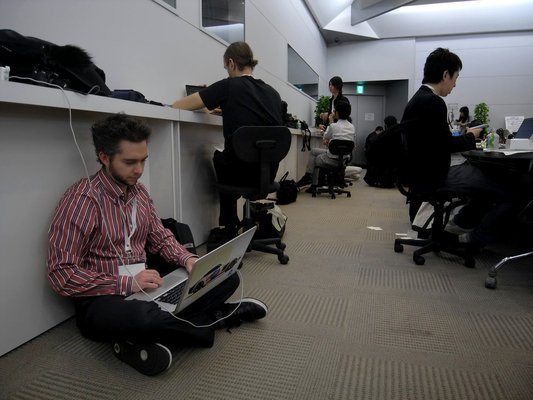 Csak az utolsó interjú után maradt tisztán egy egész, közel másfél órás blokk, próbáltuk alaposan kihasználni a lehetőséget, és az utolsó utáni pillanatig húztuk az indulást. Óriási rohanás lett a vége, mert ha a japán azt mondja, hogy az utolsó busz 18.30-kor indul az esti fogadás helyszínére, az 18.30.00-t jelent, különben a vezetőnek kötelessége rituális szeppukut elkövetnie. Legalábbis ezt mondtam én Karottának, miközben hörögve sürgettem a kábé ötkilométeres folyosórendszerben.