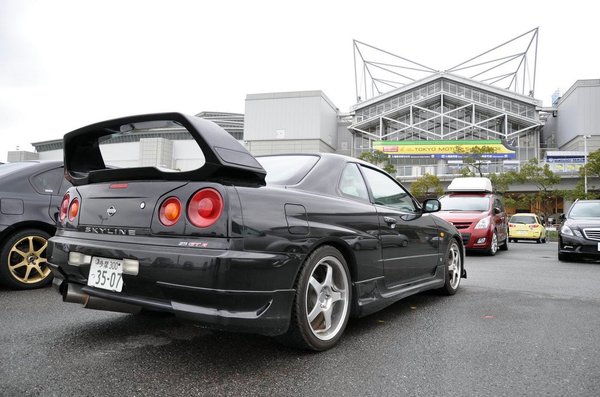 Egy eggyel korábbi Skyline GT-R-t is találunk épp a bejárattal szemben. Szerintem sokkal dögösebb, mint a mostani, még látni benne kicsit a modern autót, ez Cicciolina még egy műtéttel és három implantátummal korábbanról.