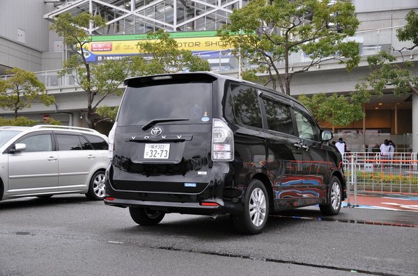 Óriási betűk hirdetik a hátulján: VOXY. Nem tudom, mennyivel tud többet, mint bármilyen MPV, amit ismerek, de állat. Az biztos, hogy nem tisztán elektromos, hiszen „Valve Matic” felirat van a hátulján, no meg ott a kipufogója is. De abban már nem lennék olyan biztos, hogy nem hibrid. Itt bármi megeshet...