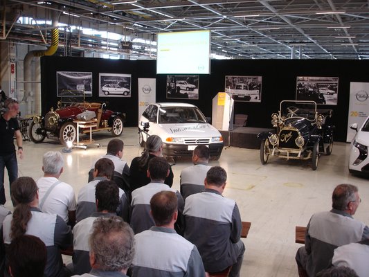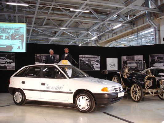 Aztán jöttek a beszédek, közben a vetítőn pörögtek a régi képek. Astra rendőrautó – már egy darab sincsen belőle. Astra kupás versenyautó – hejj, de jó volt kipróbálni a Hungaroringen. De az igazán megható pillanat mégis az volt, amikor a szentgotthárdi Opel gyár első igazgatója Ernst A. Hofmann lépett a színpadra. Sokan emlékeztek még rá, hiszen a húsz évvel ezelőtti csapatból több, mint százhatvanan még ma is Gotthárdon dolgoznak. Együtt figyelték a húsz évvel ezelőtti Híradó riportot, amelyben „Ernst A. Hofmann igazgató bejelentette, hogy az 1.4-es motorral szerelt Astra alapára 998.500 forint”. Antall József miniszterelnök pedig az Opel úttörő szerepét méltatva arról beszélt húsz éves felvételen, hogy az „Opel és a General Motors a legkorszerűbb ipari kultúrát hozta el Magyarországra”.
